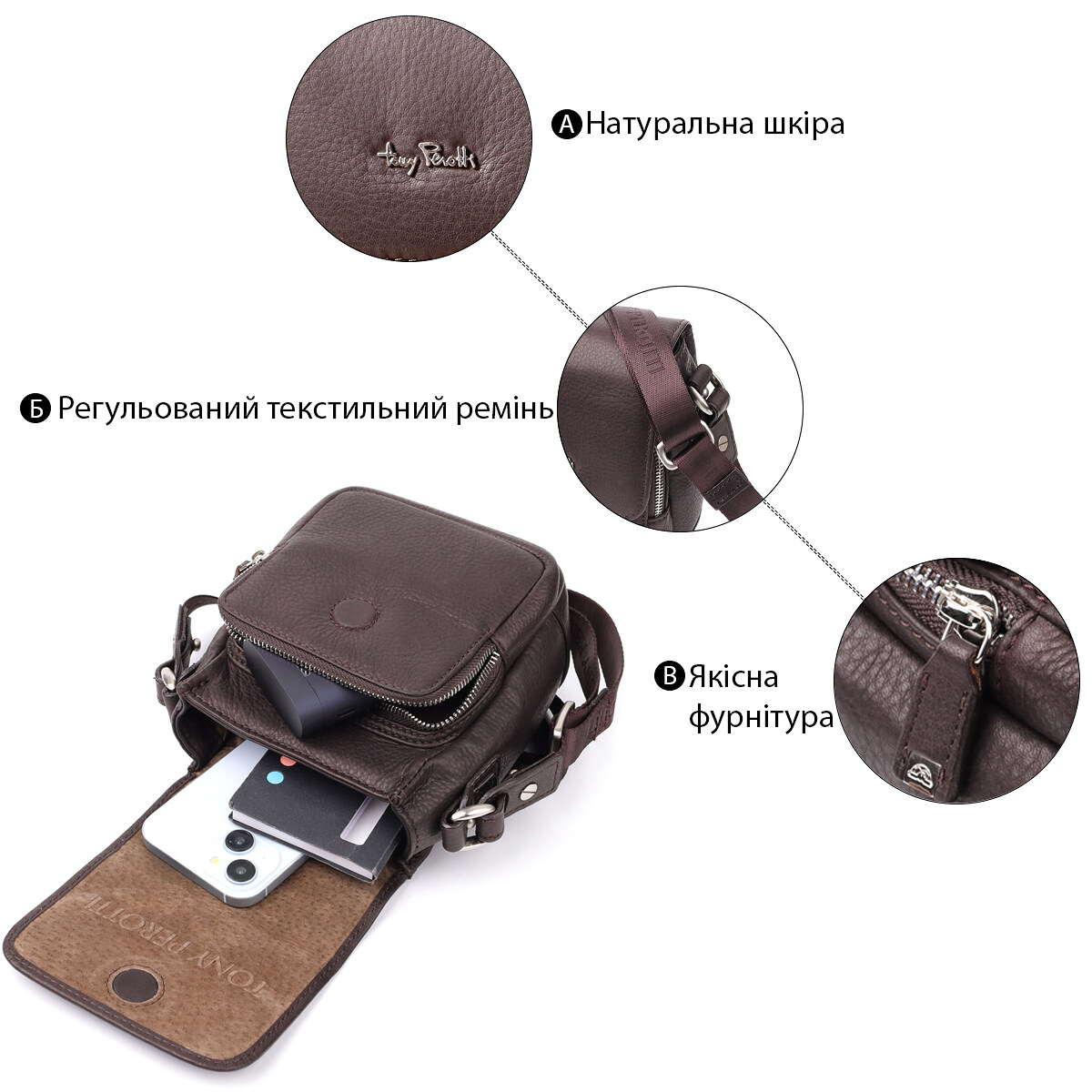 Чоловіча сумка Tony Perotti – компактність та стиль у кожній деталі.