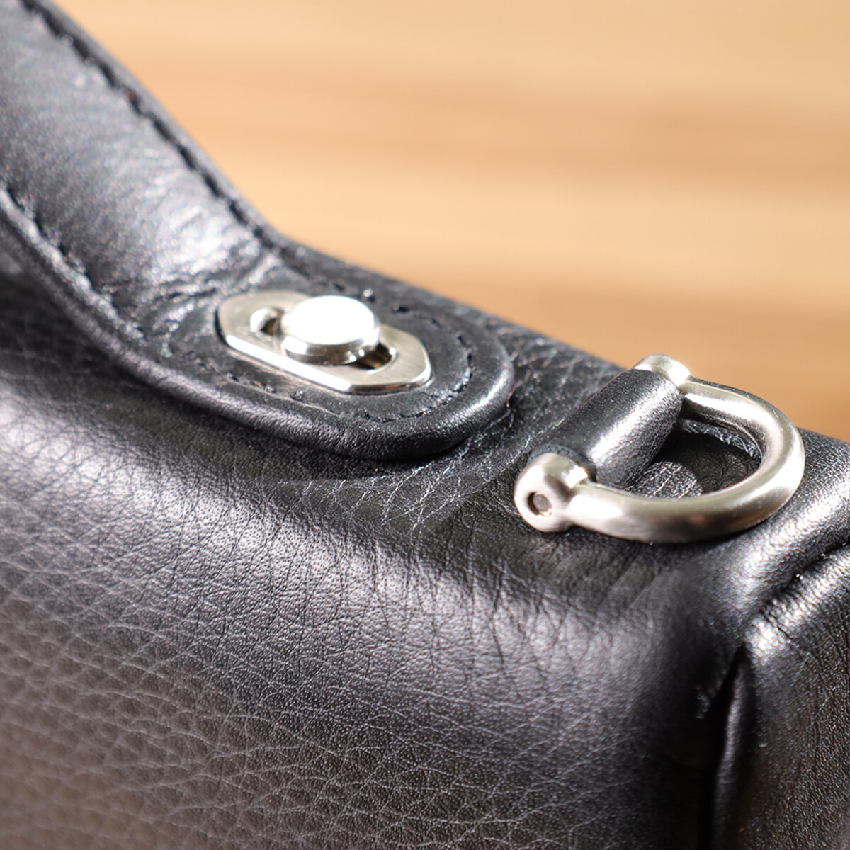 Сумка виконана з натуральної шкіри чорного кольору та оснащена шкіряною ручкою для перенесення, а також текстильним ременем. Основне відділення закривається на блискавку. Всередині розташована окрема кишеня для планшета на блискавці та додаткова потайна кишеня. Фурнітура кольору срібло підкреслює сучасний стиль та елегантність моделі.