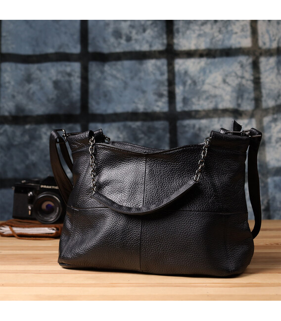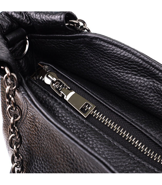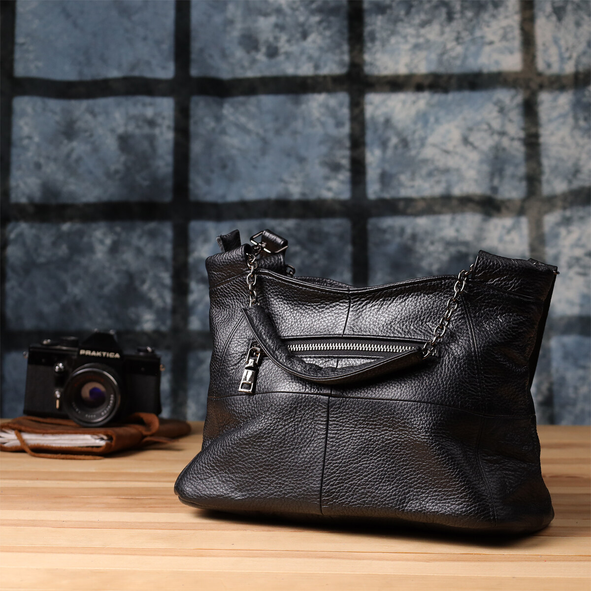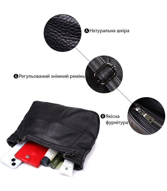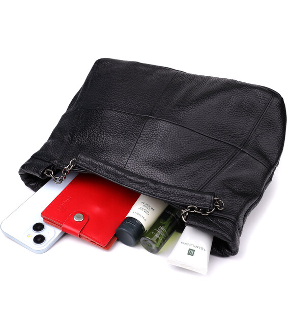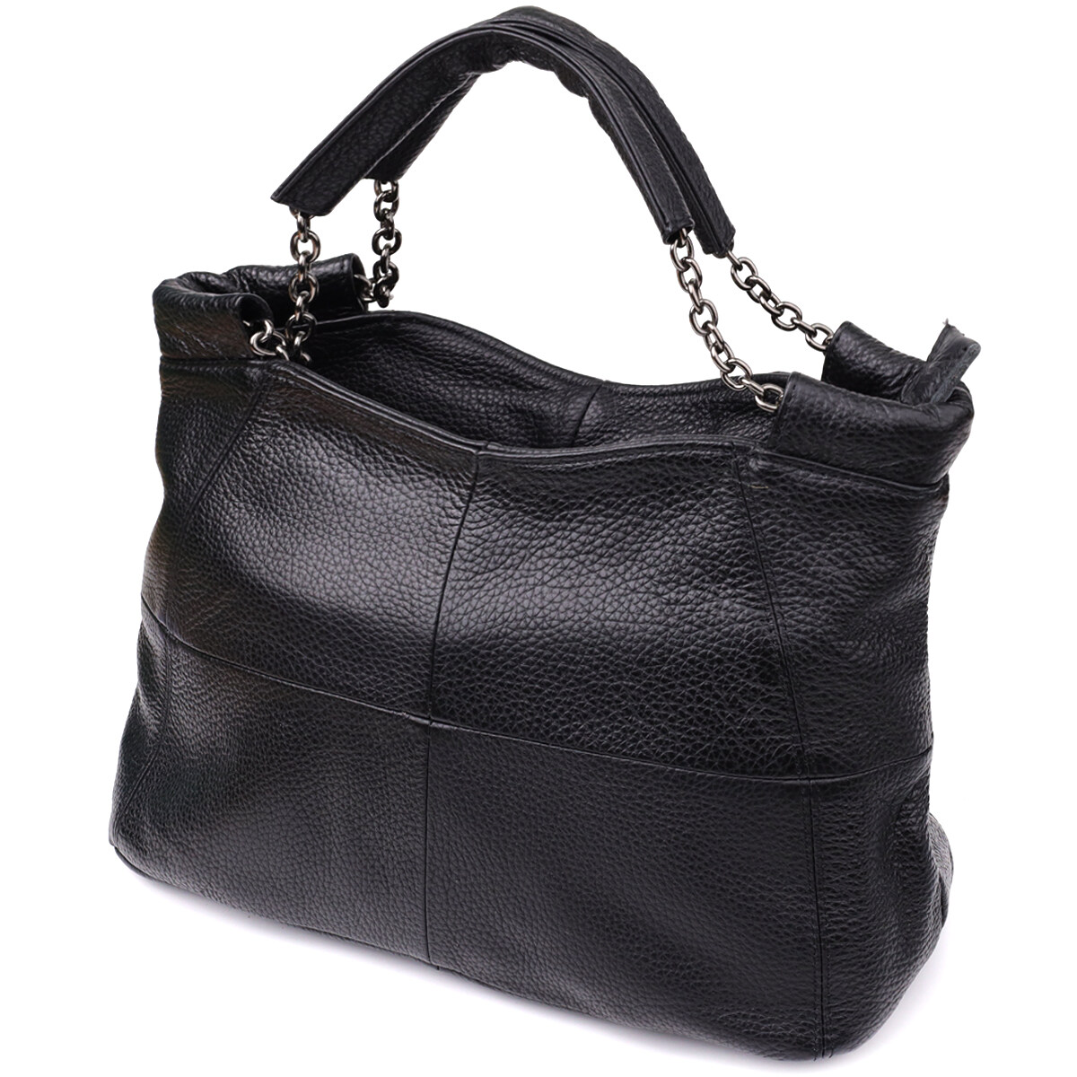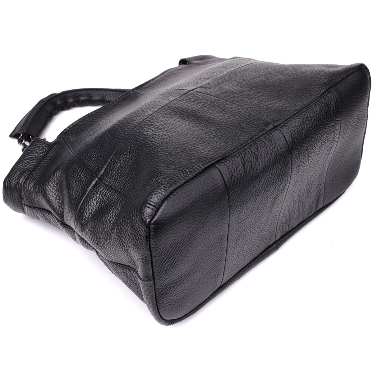 Ця чорна шкіряна сумка від бренду Vintage – ідеальний вибір для жінок, які цінують універсальність, стиль та практичність в одному аксесуарі.