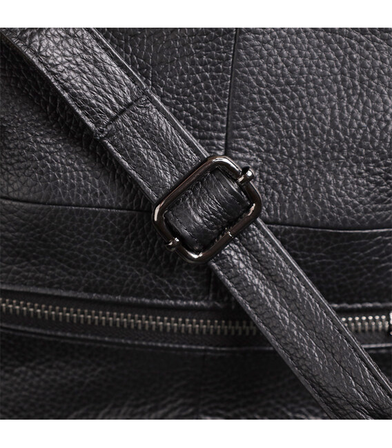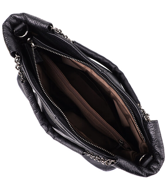 Модель укомплектована одним шкіряним ремінцем, що знімається, довжина якого регулюється, дозволяючи носити сумку на плечі або через плече — так, як зручно саме вам. Фурнітура під срібло підкреслює строгість та лаконічність чорного кольору, додаючи сумці сучасного та вишуканого звучання.