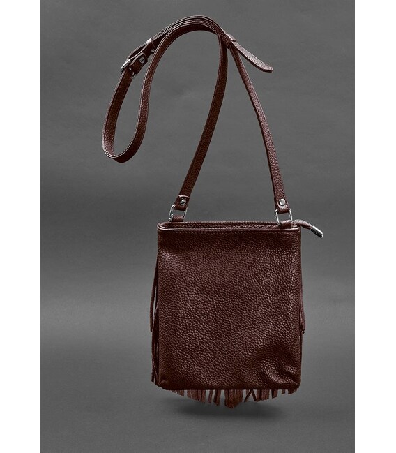 Детальніше Шкіряна жіноча сумка з бахромою міні-кроссбоді Fleco бордова