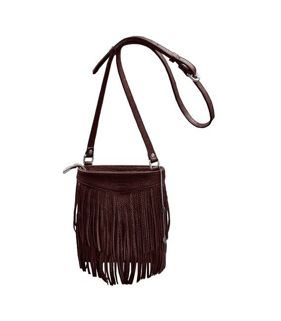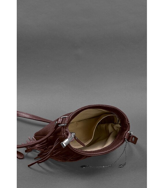 Шкіряна жіноча сумка з бахромою міні-кроссбоді Fleco бордова