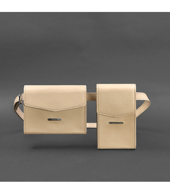 Набір жіночих шкіряних сумок Mini поясна/кроссбоді світло-бежевий