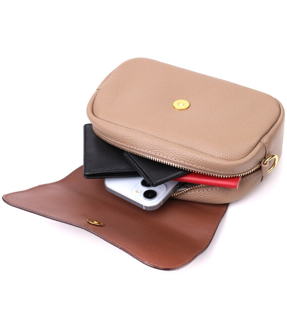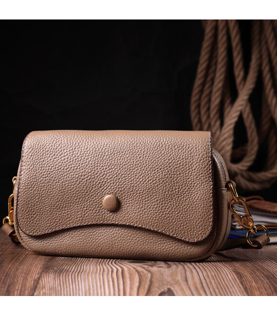 Стильна сумка жіноча з клапаном з натуральної шкіри Vintage 22432 Бежевий