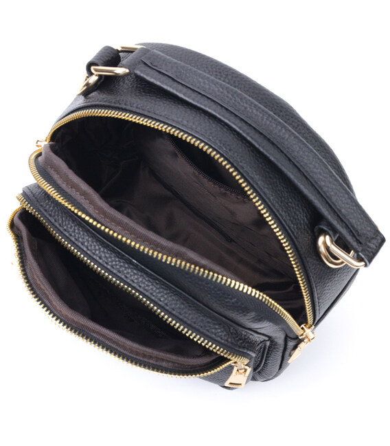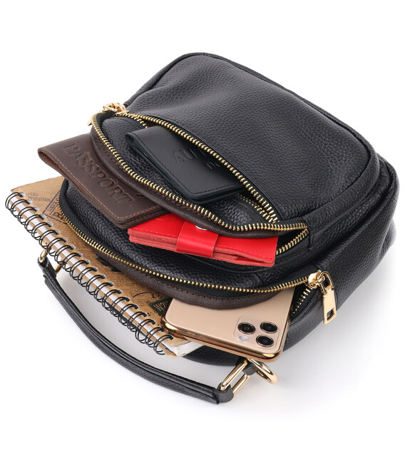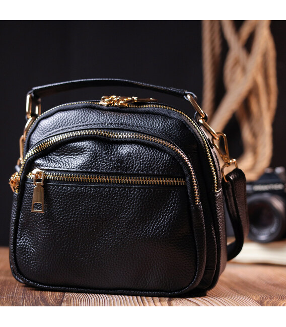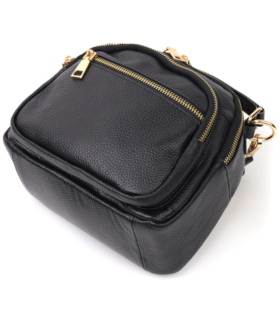 Стильна жіноча сумка компактного розміру з натуральної шкіри. Виріб дуже зручний. Чудовий варіант невеликої сумки на кожен день. Модель доповнена фурнітурою золотого кольору. Шкіра м'яка і приємна на дотик. Сумка чудово виносить негоду. Всередині аксесуара міцна підкладка. У сумку з легкістю помістяться всі необхідні речі. З такою сумкою зручно ходити на роботу або зустрічі. Сумка стане чудовим подарунком для будь-якої жінки.