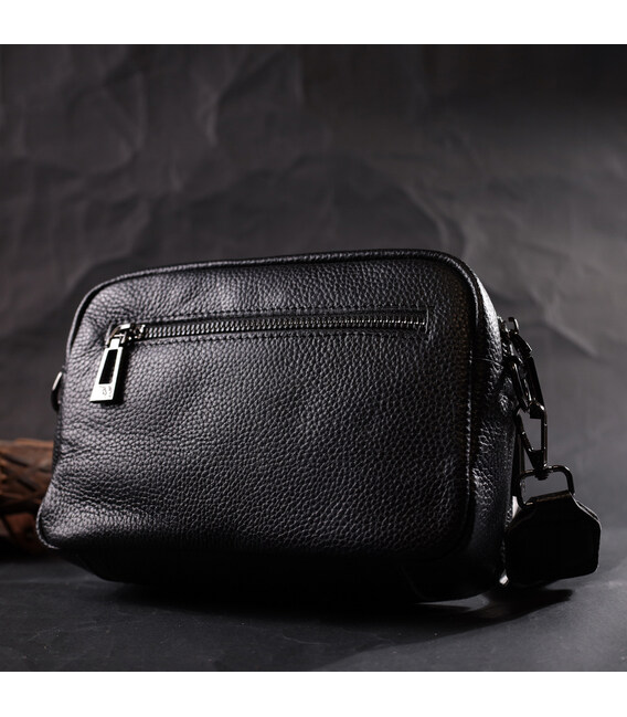 Компактна жіноча сумка крос-боді з натуральної шкіри Vintage 22294 Чорна