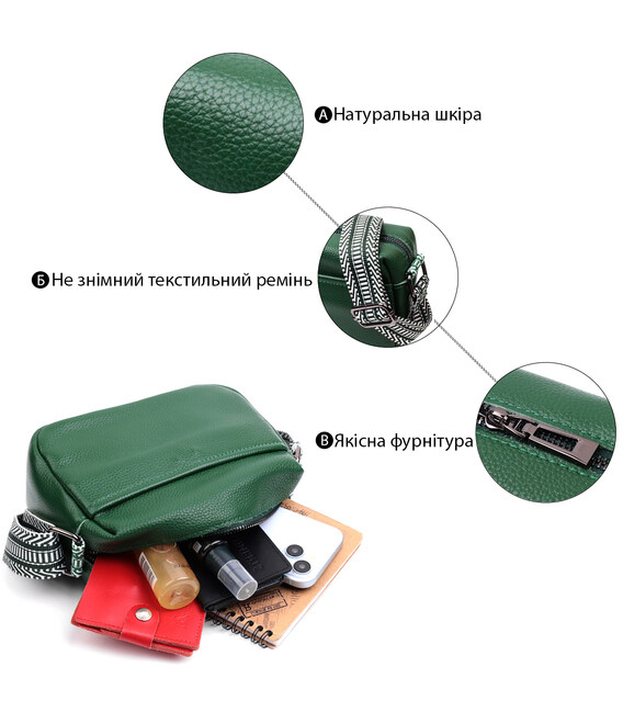 Детальніше Сумка на одне відділення для стильних жінок із натуральної шкіри Vintage 22603 Зелена