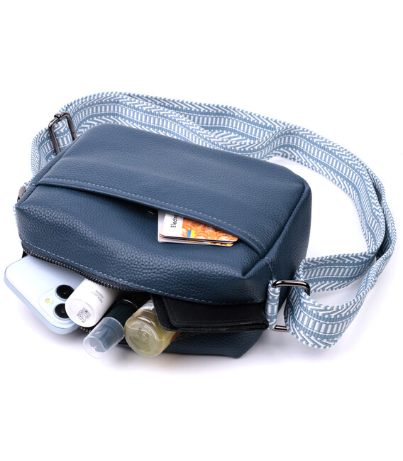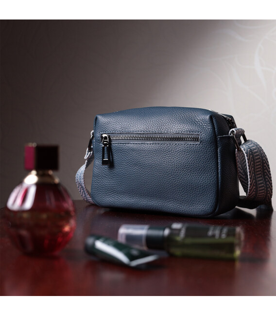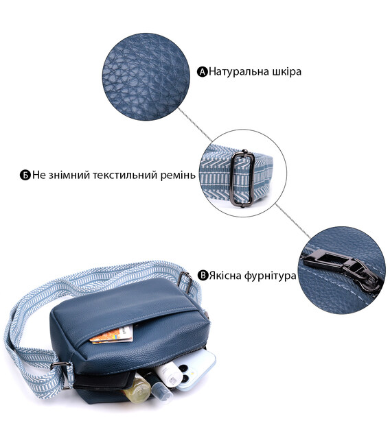Трендова сумка на одне відділення для стильних жінок із натуральної шкіри Vintage 22605 Синя