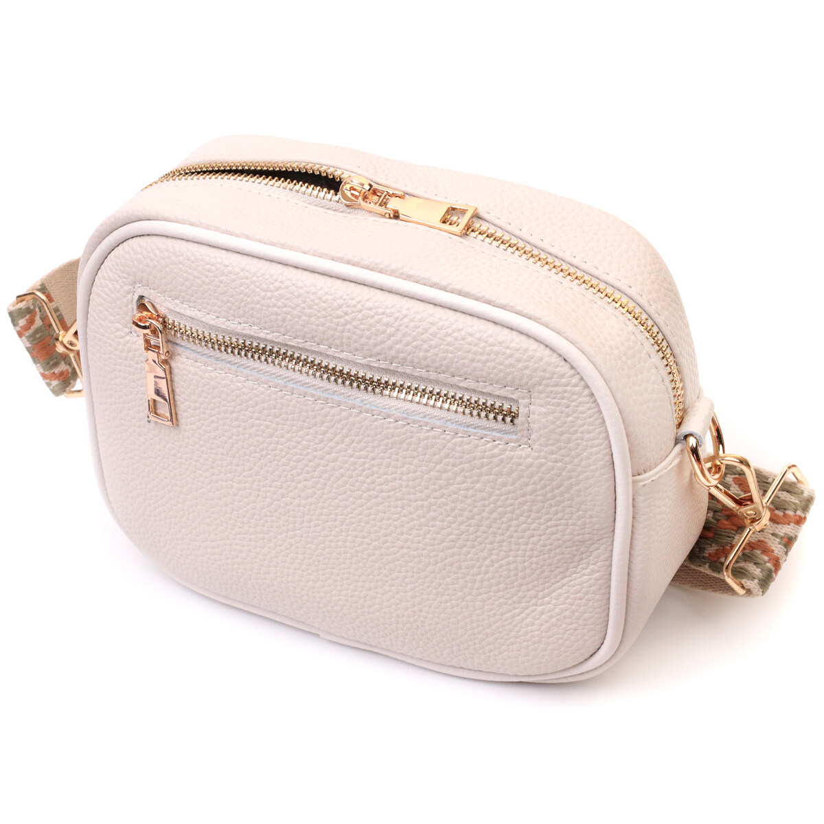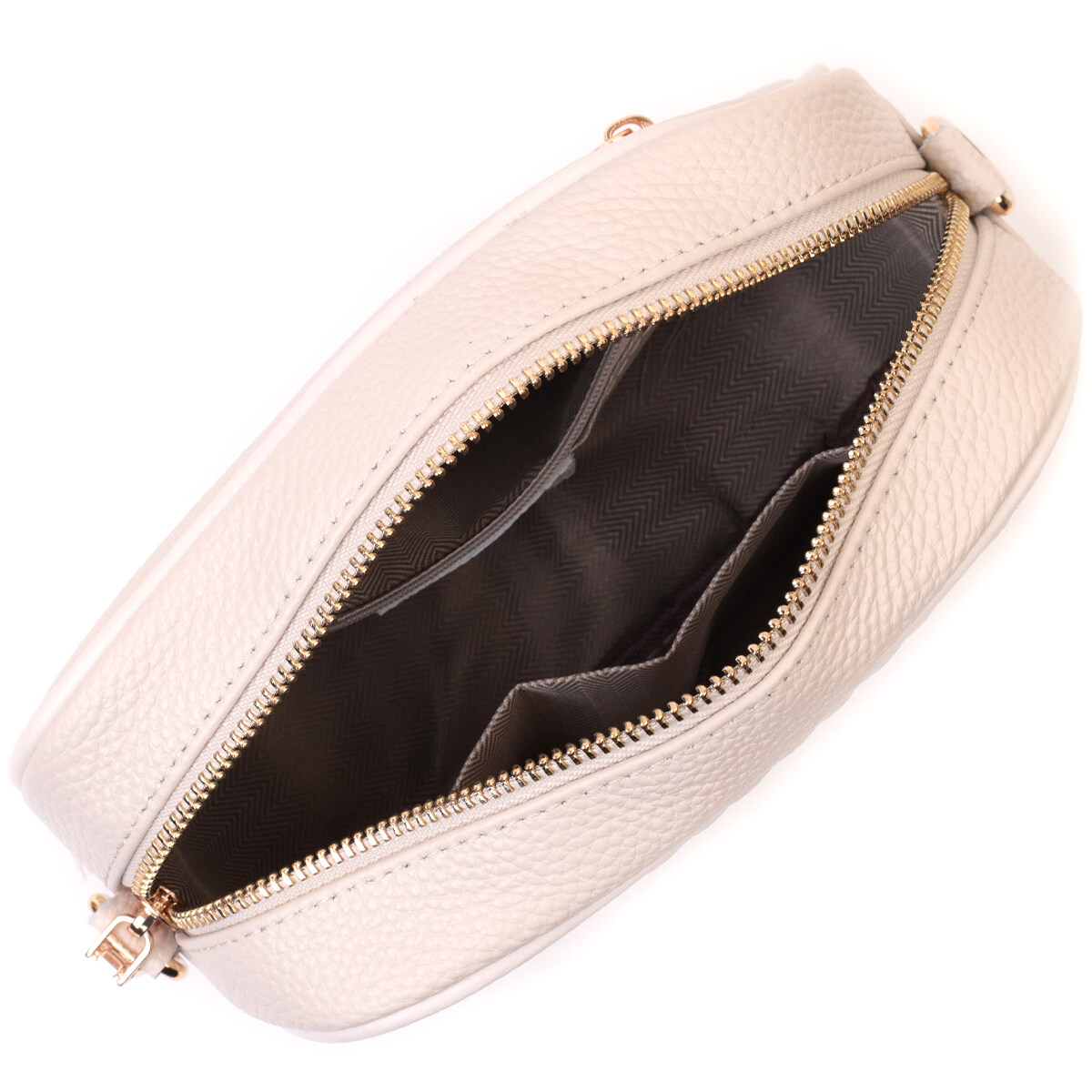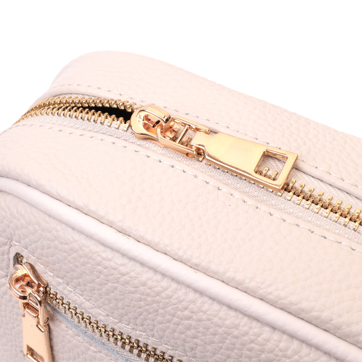 Цікава сумка для жінок на всі випадки життя із натуральної якісної шкіри. Аксесуар складається з основного відділення, яке закривається на блискавку, кишені відкритого типу всередині, а також кишені на блискавці зовні на задній стороні. Носити сумку можна в руці, під рукою, на плечі і через плече, для цього є текстильний ремінь, що знімається. В аксесуарі використано якісну фурнітуру кольору золота.
