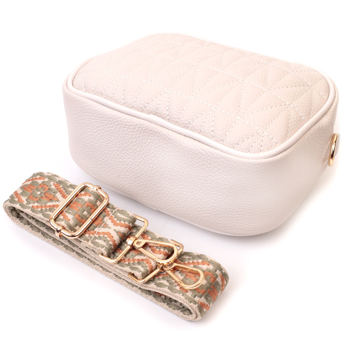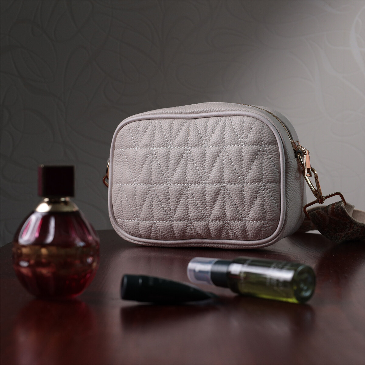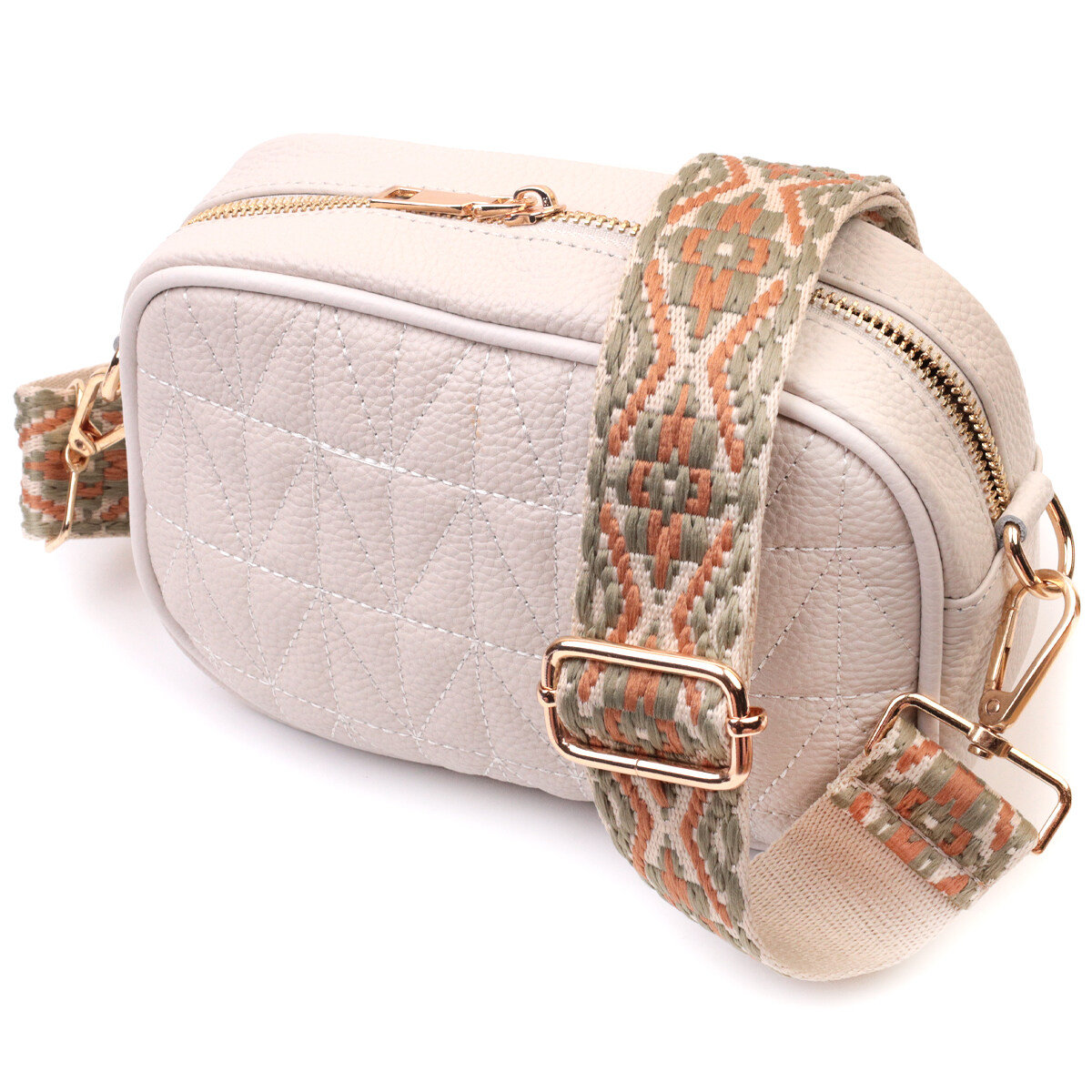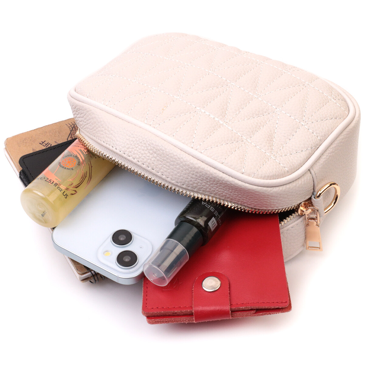 Цікава сумка для жінок на всі випадки життя із натуральної якісної шкіри. Аксесуар складається з основного відділення, яке закривається на блискавку, кишені відкритого типу всередині, а також кишені на блискавці зовні на задній стороні. Носити сумку можна в руці, під рукою, на плечі і через плече, для цього є текстильний ремінь, що знімається. В аксесуарі використано якісну фурнітуру кольору золота.