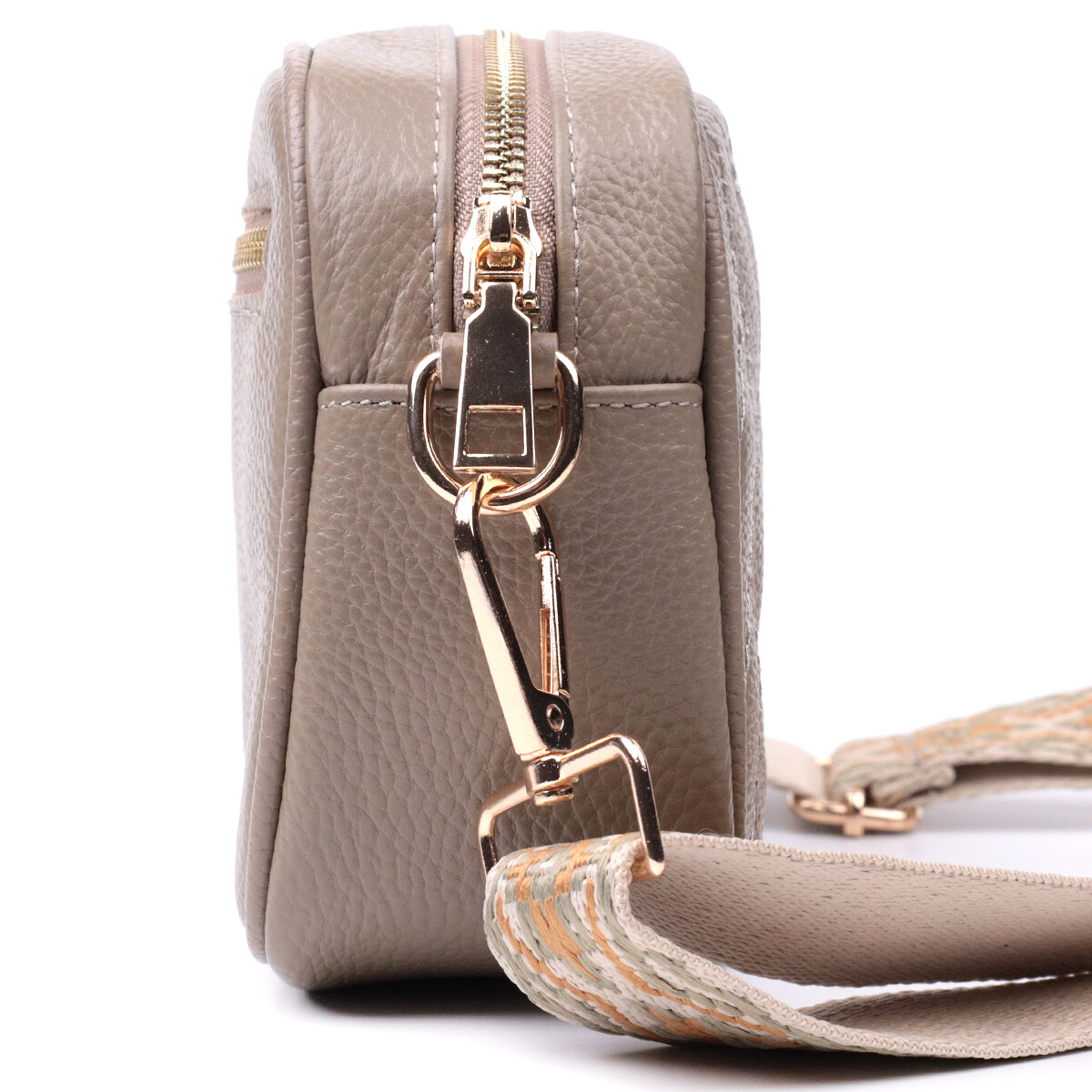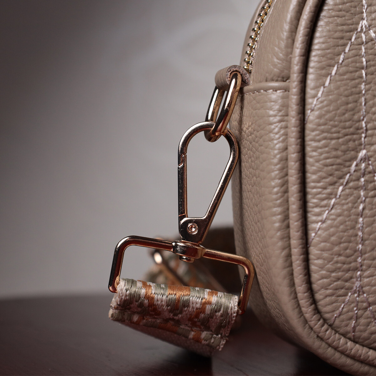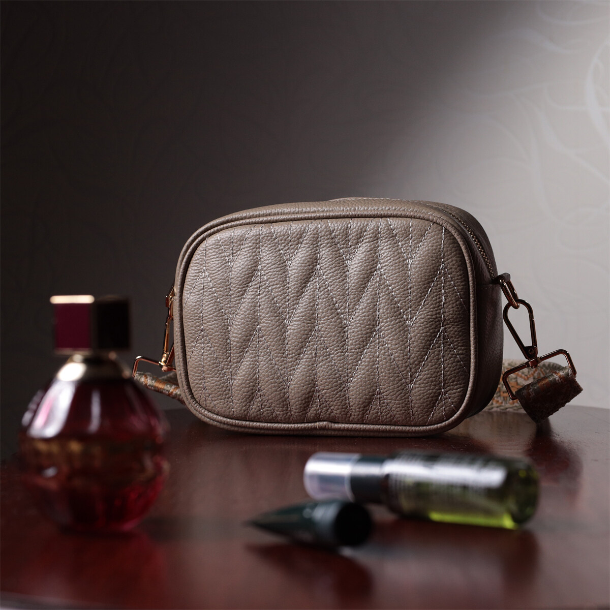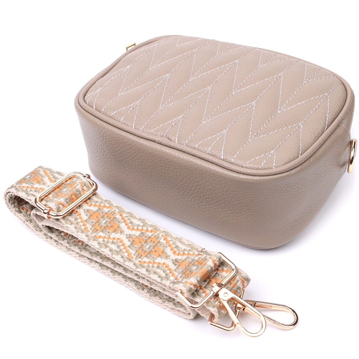 Зручна сумка для жінок на всі випадки життя із натуральної якісної шкіри. Аксесуар складається з основного відділення, яке закривається на блискавку, кишені відкритого типу всередині, а також кишені на блискавці зовні на задній стороні. Носити сумку можна в руці, під рукою, на плечі і через плече, для цього є текстильний ремінь, що знімається. В аксесуарі використано якісну фурнітуру кольору золота.