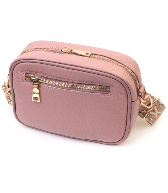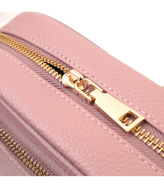 Чарівна сумка для жінок на всі випадки життя із натуральної якісної шкіри. Аксесуар складається з основного відділення, яке закривається на блискавку, кишені відкритого типу всередині, а також кишені на блискавці зовні на задній стороні. Носити сумку можна в руці, під рукою, на плечі і через плече, для цього є текстильний ремінь, що знімається. В аксесуарі використано якісну фурнітуру кольору золота.