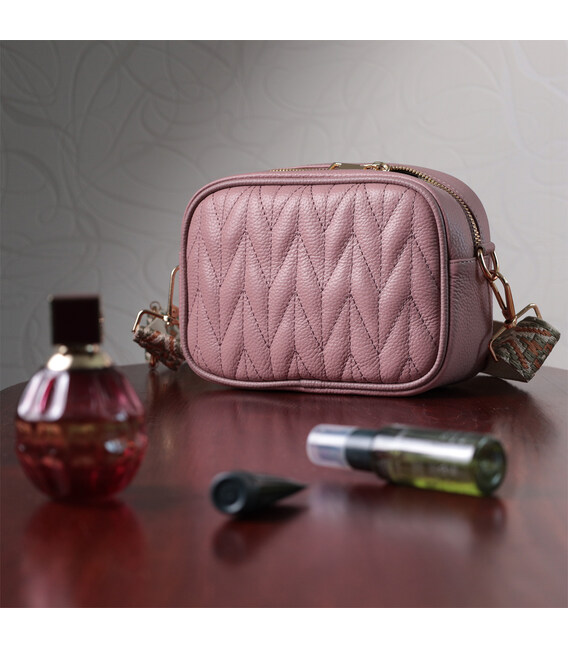 Красива стьобана жіноча сумка з натуральної шкіри Vintage 22614 Рожева