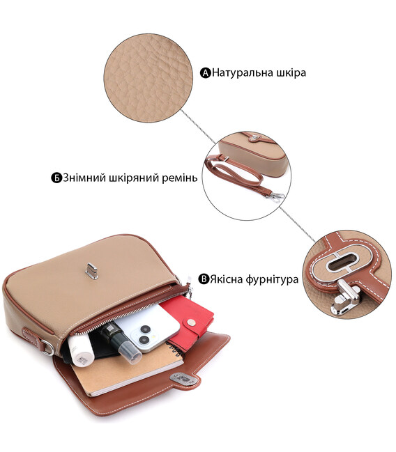 Детальніше Стильна сумка жіноча з фактурним клапаном з натуральної шкіри Vintage 22620 Бежева