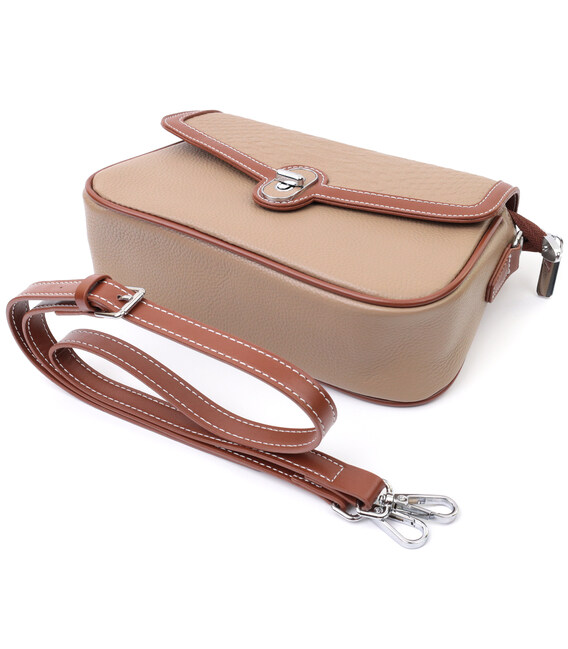 Стильна сумка жіноча з фактурним клапаном з натуральної шкіри Vintage 22620 Бежева