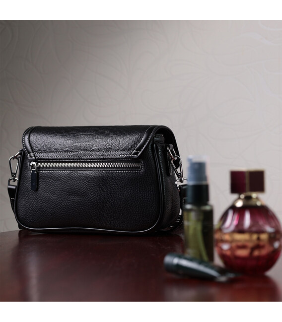 Елегантна сумка жіноча з фактурним клапаном з натуральної шкіри Vintage 22624 Чорна