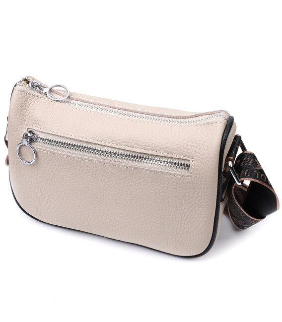 Чарівна сумка для жінок на всі випадки життя із натуральної якісної шкіри. Аксесуар складається з основного відділення, яке закривається на блискавку, потайної кишені на блискавці та кишені відкритого типу всередині, а також кишені на блискавці зовні на тильній стороні. Носити сумку можна в руці, під рукою, на плечі та через плече, для цього є не знімний текстильний ремінь. В аксесуарі використано якісну фурнітуру кольору срібла.