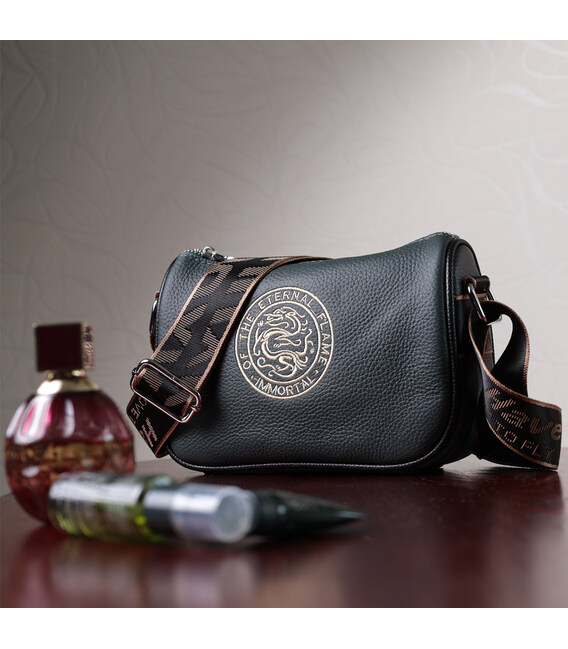 Жіноча трендова сумка з вишивкою по центру з натуральної якісної шкіри. Аксесуар складається з основного відділення, яке закривається на блискавку, потайної кишені на блискавці та кишені відкритого типу всередині, а також кишені на блискавці зовні на тильній стороні. Носити сумку можна в руці, під рукою, на плечі та через плече, для цього є не знімний текстильний ремінь. В аксесуарі використано якісну фурнітуру кольору срібла.
