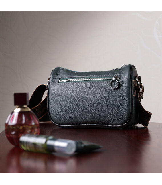 Модна жіноча сумка з вишивкою на лицьовій стороні з натуральної шкіри Vintage 22627 Темно-зелена