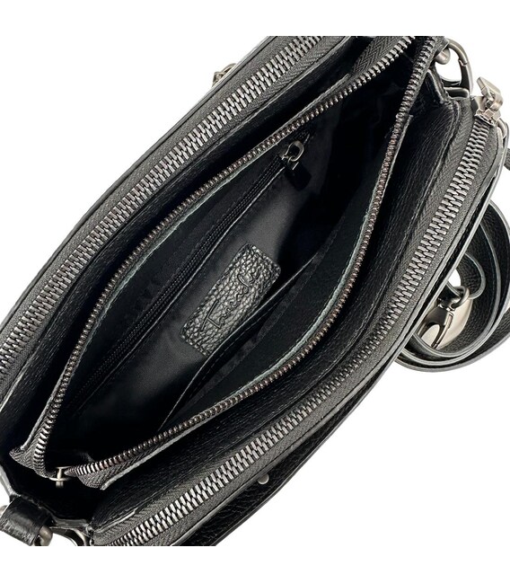 Сумочка кросбоді з натуральної шкіри. Розмір: 25 x 18 x 7 см. Модель невеликих розмірів Має три відділення із закриттям на блискавку кожне. Усередині є невеликі потайні кишеньки на змійці для дрібних предметів. Коротка шкіряна ручка і наплічний довгий ремінець зі шкіри регулюється по довжині, відстібається за допомогою карабінів. З тільної сторони горизонтальна кишеня на блискавці Підкладка: текстиль Колір виробу: чорний Колір фурнітури: сріблоЗнайшли цю модель дешевше? Зв'яжіться з нами, і ми запропонуємо Вам найнижчу ціну в Україні, тому що виробник цього товару.