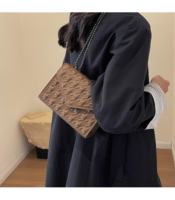 Жіноча сумка каркасна стьобана кросбоді з екошкіри на ланцюжкуОсобливості: розміри 20 x 14 x 8 см.Сумка має одне основне відділення, яке закривається за допомогою кнопкиБез підкладки Колір: коричневий Колір фурнітури: сріблоЗнайшли цю модель дешевше? Зв'яжіться з нами, і ми запропонуємо Вам найнижчу ціну в Україні, тому що виробник цього товару.