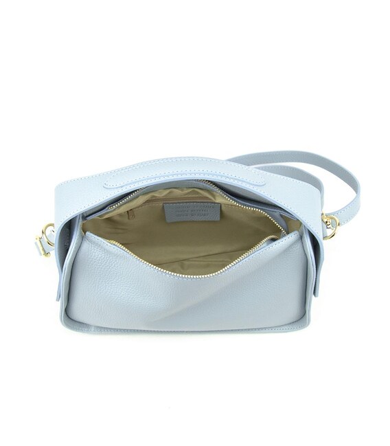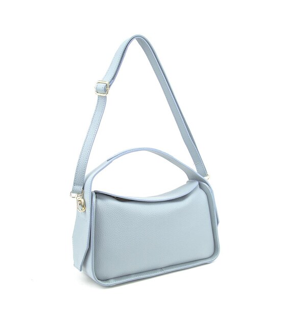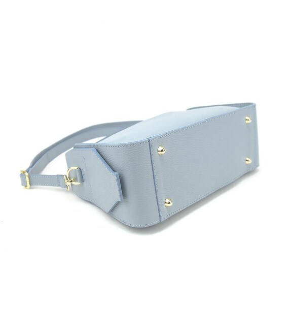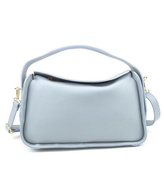 Жіноча повсякденна класична шкіряна сумка кросбоді через плече з двома ручкамиОсобливості: розмір 27 см. ширина 25 см. висота по краях сумки 16 см. висота в середині сумки 11 см. глибинаМатеріал: натуральна шкіра Сумка має одне основне відділення, яке закривається на блискавку У комплекті довгий шкіряний наплічний ремінець, який регулюється по довжині й кріпиться за допомогою карабінів.Підкладка: текстиль Колір Блакитний Колір фурнітури: золото Знайшли цю модель дешевше? Зв'яжіться з нами, і ми запропонуємо Вам найнижчу ціну в Україні, оскільки є виробником цього товару.
