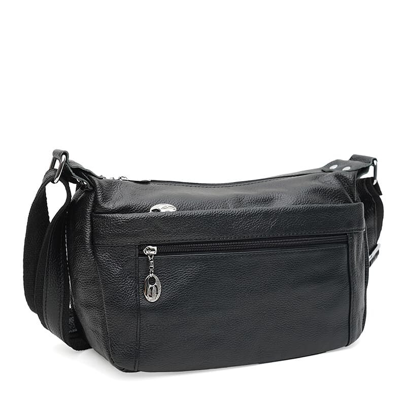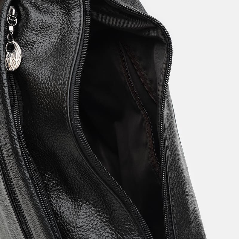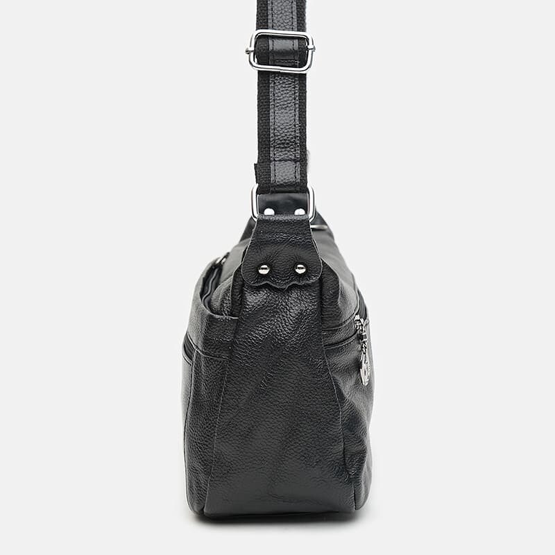 Жіноча шкіряна сумка через плече є актуальною для активних жінок. Сумка - містка та компактна. Має 1 основне відділення на блискавці. Всередині 2 кишені для телефону та дрібниць. Зовні 3 кишені на блискавці. Підкладка з текстилю. Плечовий ремінь регулюється по довжині.