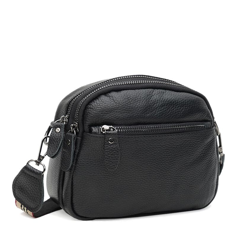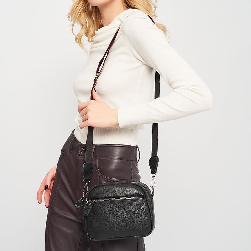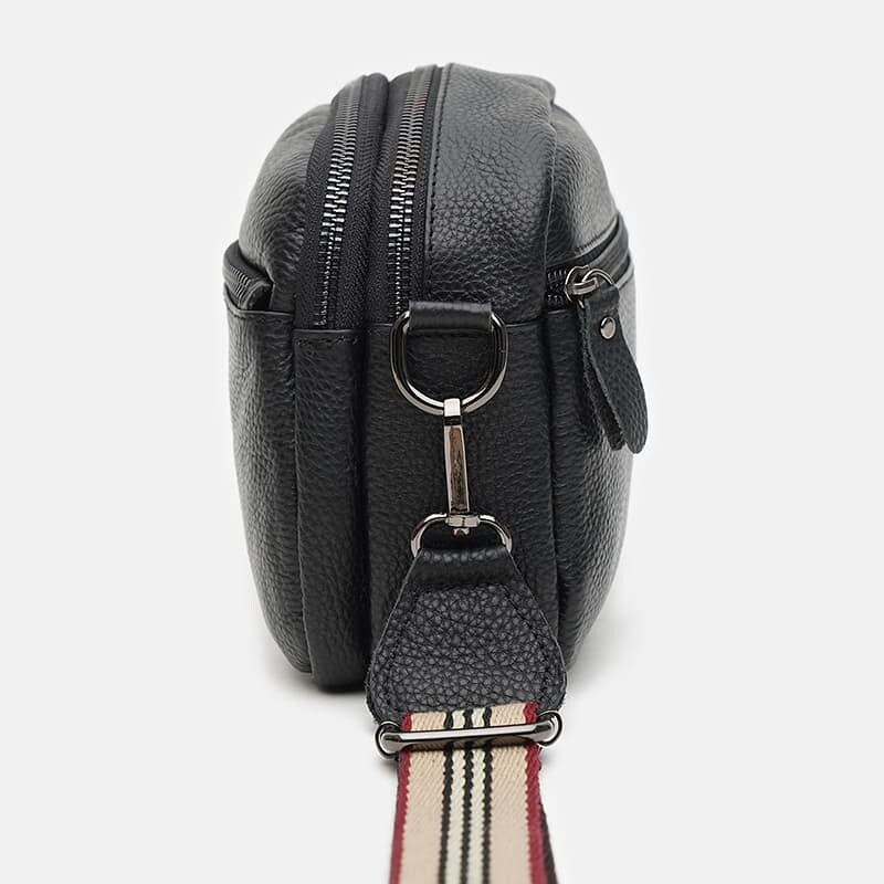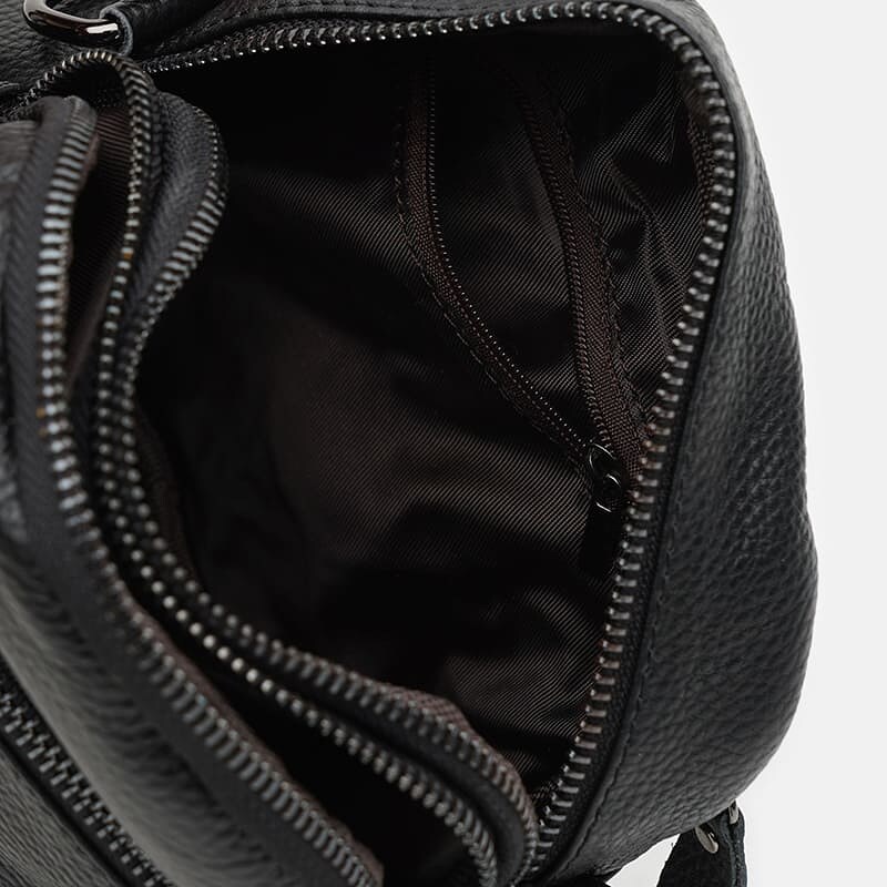 Жіноча сумка виготовлена з натуральної шкіри. Має компактні розміри та відмінну місткість. Два відділення закриваються на блискавку. Всередині 1 кишеня на блискавці. Зовні 2 кишені на блискавці. Підкладка з текстилю. Фурнітура з металу. Знімний плечовий ремінь регулюється по довжині.