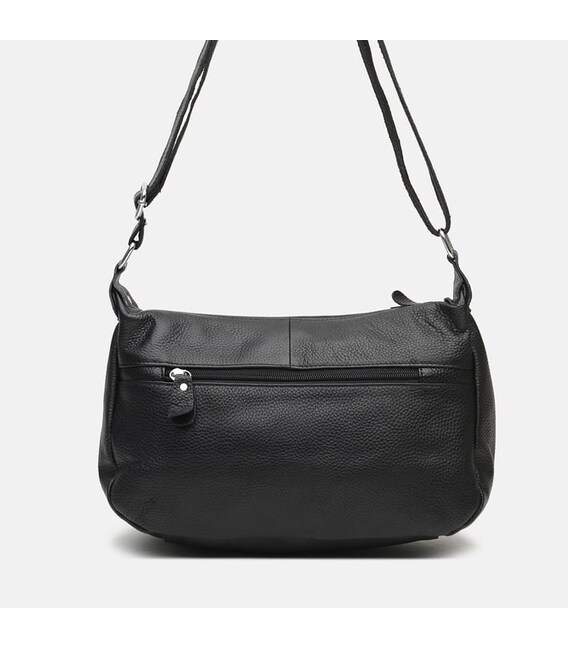 Жіноча сумка виконана з натуральної шкіри. Закривається на блискавку і має 1 основне відділення. Всередині 2 кишені для телефону і дрібниць. Зовні -3 горизонтальні кишені на блискавці. Підкладка-текстиль. Колір фурнітури-срібло. Плечовий ремінь регулюється по довжині.