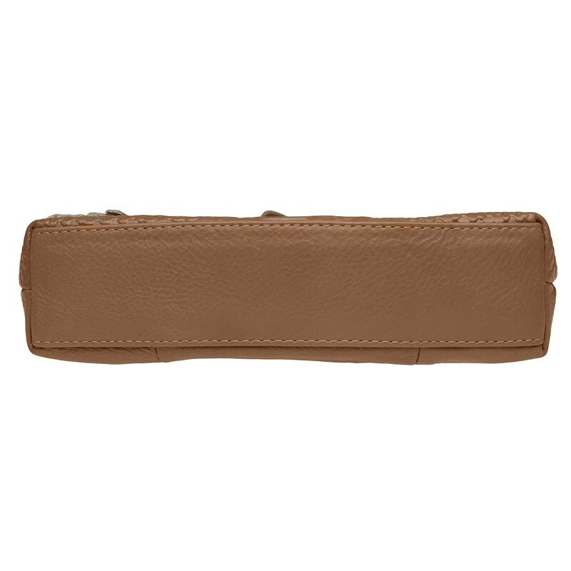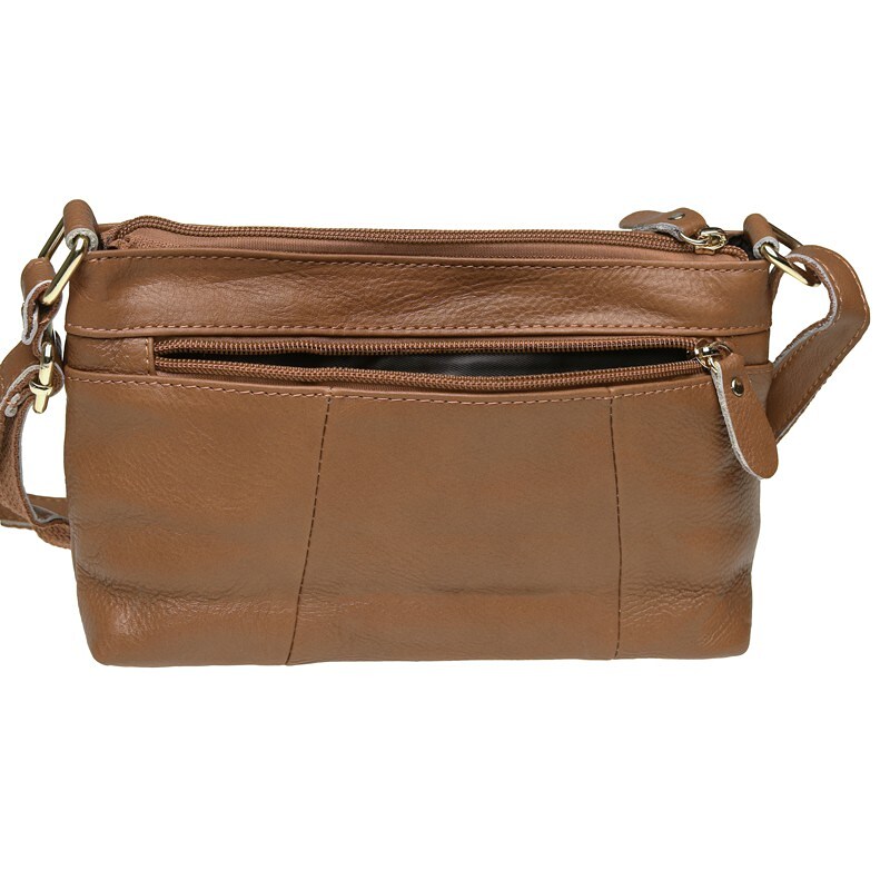 Дана модель жіночої сумки закривається на блискавку, має 3 відділення всередині і 2 кишені на блискавці. Зовні-2 кишені на блискавці. Підкладка-текстиль. Плечовий ремінь регулюється по довжині.