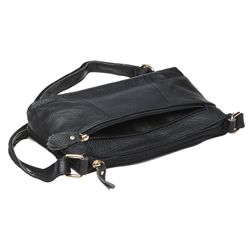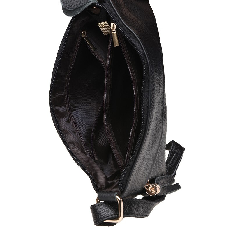 Дана модель жіночої сумки закривається на блискавку, має 3 відділення всередині і 2 кишені на блискавці. Зовні-2 кишені на блискавці. Підкладка-текстиль. Плечовий ремінь регулюється по довжині.