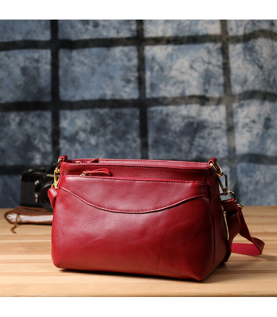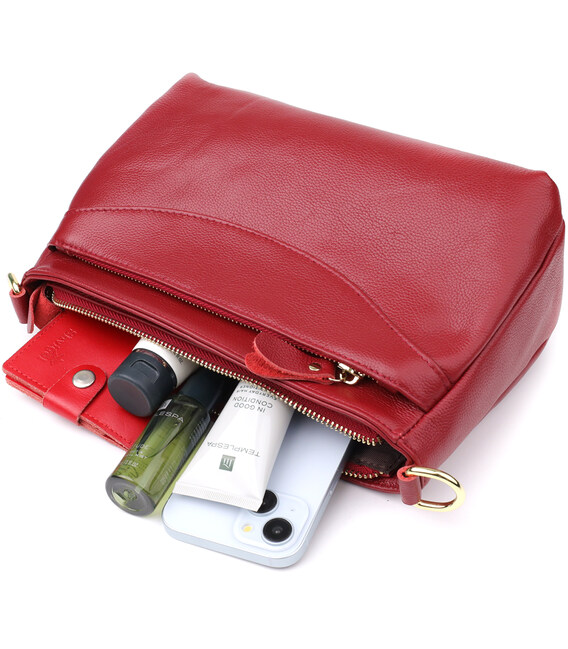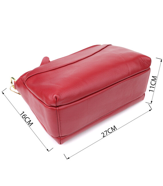 Ця червона шкіряна сумка – відмінний вибір для жінок, які цінують поєднання стильного дизайну, зручності та високої якості.