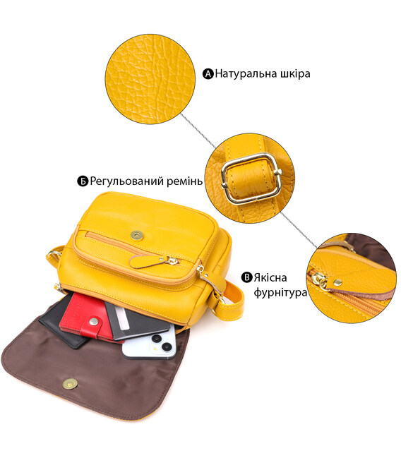 Детальніше Шкіряна сумка для жінок на день Vintage 22969 Жовтий