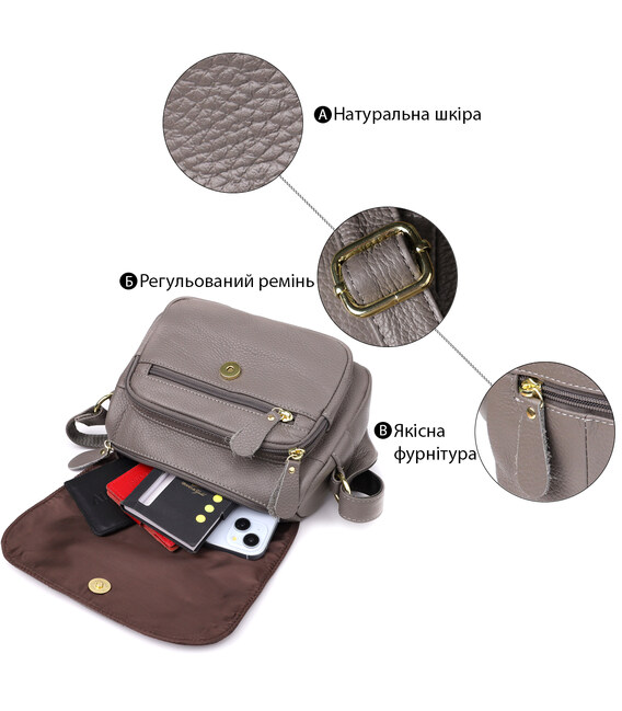Детальніше Сумка з натуральної шкіри для стильних жінок Vintage 22974 Сірий