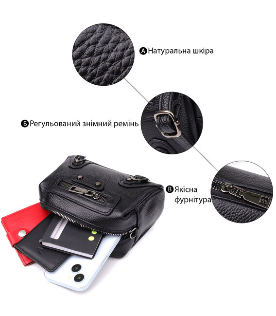 Детальніше Модна жіноча сумка з натуральної шкіри з актуальним декором Vintage 22922 Чорний