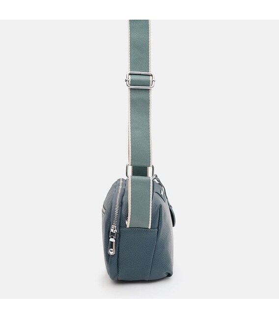 Жіноча шкіряна сумка має 2 основні відділення на блискавці, із зовнішнього боку – 1 кишеню на блискавці, усередині сумки – 2 кишені для телефону та інших дрібниць. Текстиль підкладки. Незнімний текстильний ремінь регулюється довжиною.