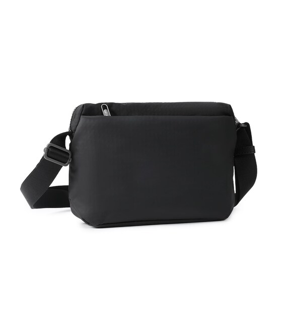 Зручна, компактна сумка через плече виготовлена з переробленої тканини в поєднанні з еко-шкірою. Оснащена основним відділенням на блискавці з відділом для смартфону, та додатковою кишенею на блискавці з RFID-захистом. На задній кишені виробу, передбачено втоплену блискавку, яка щільно прилягає до тіла, як додатковий засіб безпеки. Має регульований по довжині ремінь.