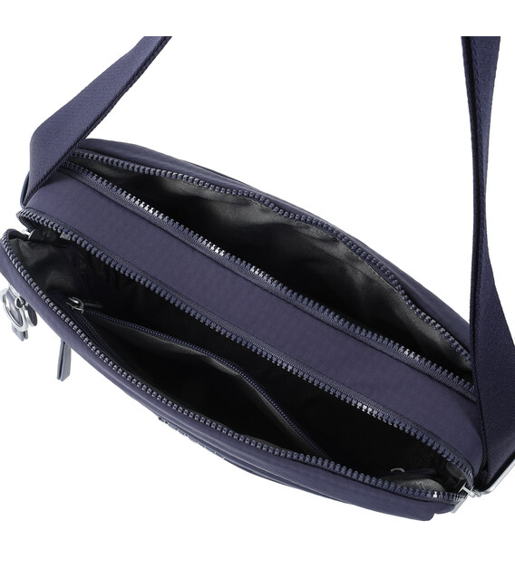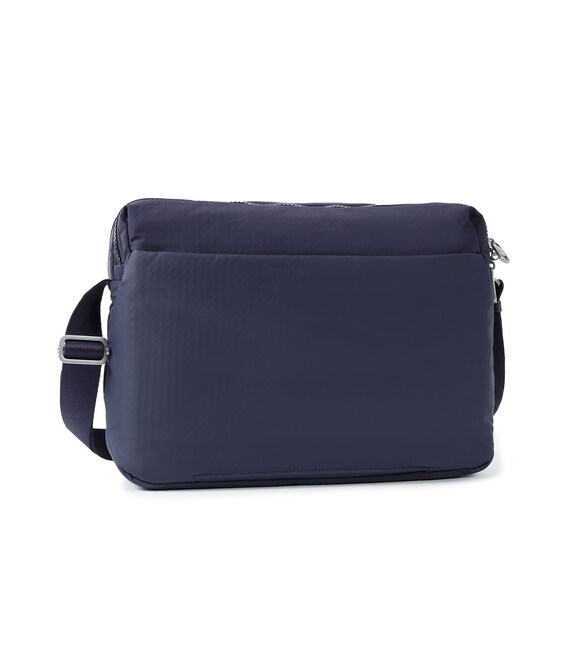 Зручна, містка сумка через плече виготовлена з переробленої тканини в поєднанні з еко-шкірою. Оснащена двома основними відділеннями на блискавці, з відділом для смартфону, та додатковою кишенею на блискавці з RFID-захистом в першому, другий відділ передбачений для ноутбука 13" та документів формату А4, і тому на даному відділі блискавка, передбачає можливість розмістити навісний замок для гарантування додаткової безпеки цінних речей. На задній кишені виробу, передбачено втоплену блискавку, яка щільно прилягає до тіла, як додатковий засіб безпеки, також, задня кишеня, за потреби, завдяки блискавці перетворюється у планку для фіксації на телескопічну ручку валізи, що безумовно полегшує пересування під час подорожей.