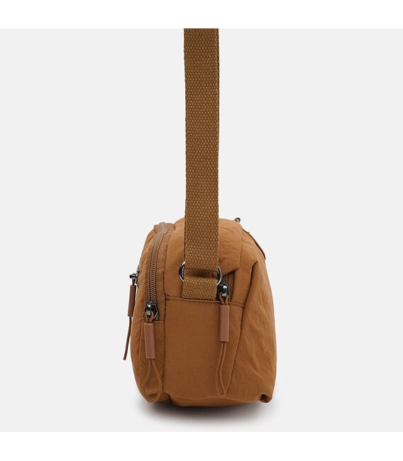 Жіноча сумка виготовлена з якісного текстилю. Сумка закривається на блискавку. Має 2 відділення, всередині - 1 кишеню на блискавці. З тильного боку - 1 кишеня на блискавці. Підкладка з текстилю. Незнімний текстильний ремінь регулюється по довжині.