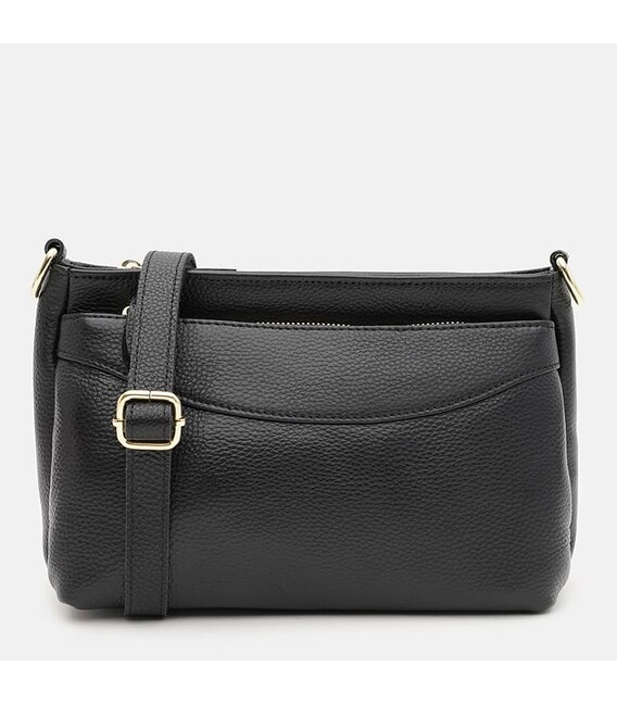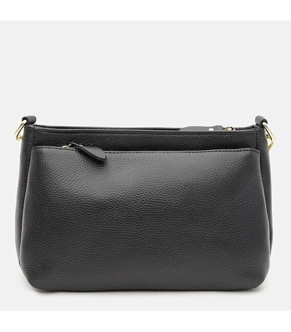 Жіноча шкіряна сумка має 2 основні відділення та закривається на блискавку. З лицьової є 1 кишеня на блискавці, з тильної - 1 кишеня на блискавці. Всередині сумки: 2 кишені на блискавці. Підкладка – текстиль. Ремінь – шкіра.