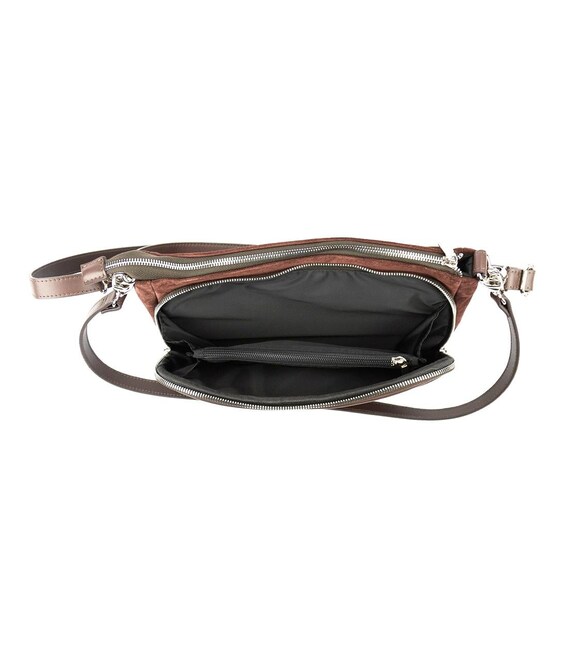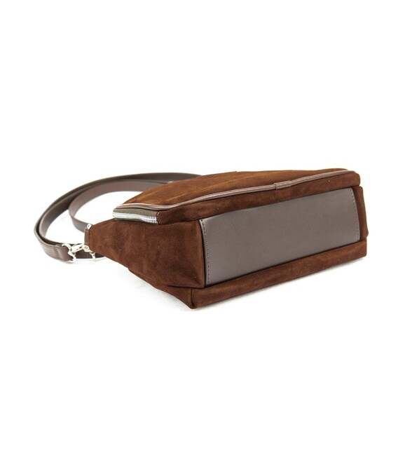 Сумка жіноча кросбоді через плече з натуральної замшіОсобливості: Розмір 28 x 19 x 10Матеріал: преміальна натуральна замша Сумка має одне основне відділення, яке закривається на блискавку. У комплекті довгий шкіряний наплічний ремінець, який регулюється по довжині й кріпиться за допомогою карабінів.Підкладка: текстильна Колір темно-коричневий Колір фурнітури: бронзаЗнайшли цю модель дешевше? Зв'яжіться з нами, і ми запропонуємо Вам найнижчу ціну в Україні, тому що виробник цього товару.