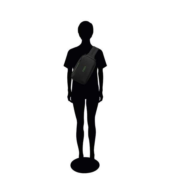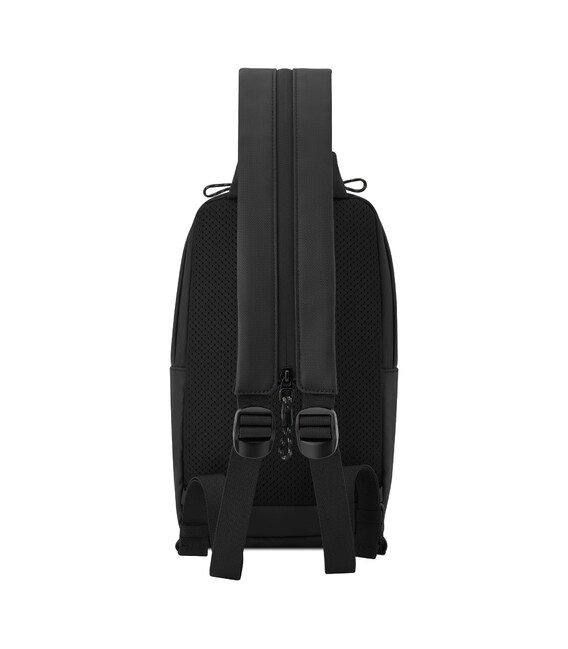 Сумка-слінг ідеально підходить для щоденного використання, дозволить звільнити руки і помістити речі першої необхідності, наприклад ключі, смартфон, портмоне. Оснащена одним основним відділенням в якому є внутрішній відділ для смартфону та відділ для планшету. З зовнішньої сторони кишеня на блискавці для дрібниць. Вироби колекції виготовлені з хвилястого поліестеру 900D з PU-покиттям, яке захищає від дощу, бризок, вологи й швидко сохне. Для зручності переміщення на задній частині розміщені плечові ремені, які за допомогою блискавки у суцільний ремінь, що дозволяє обирати як носити сумку.