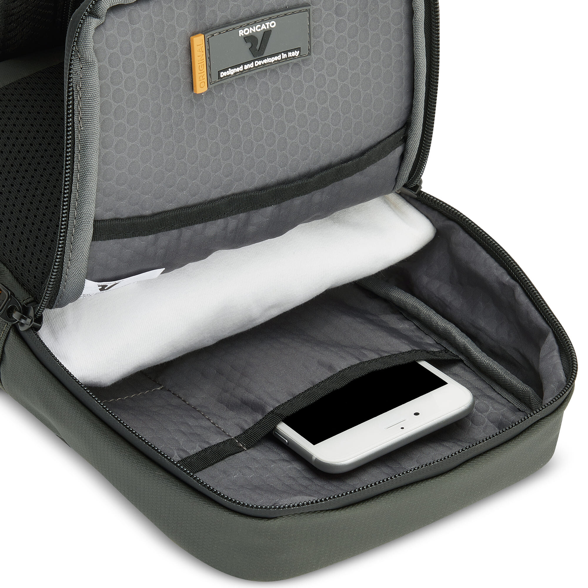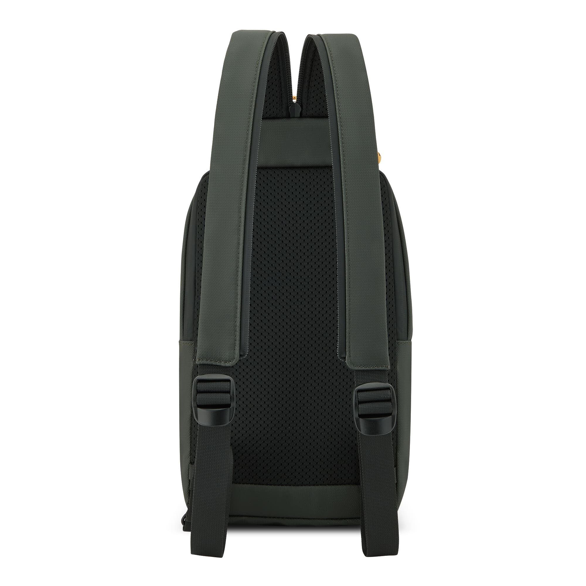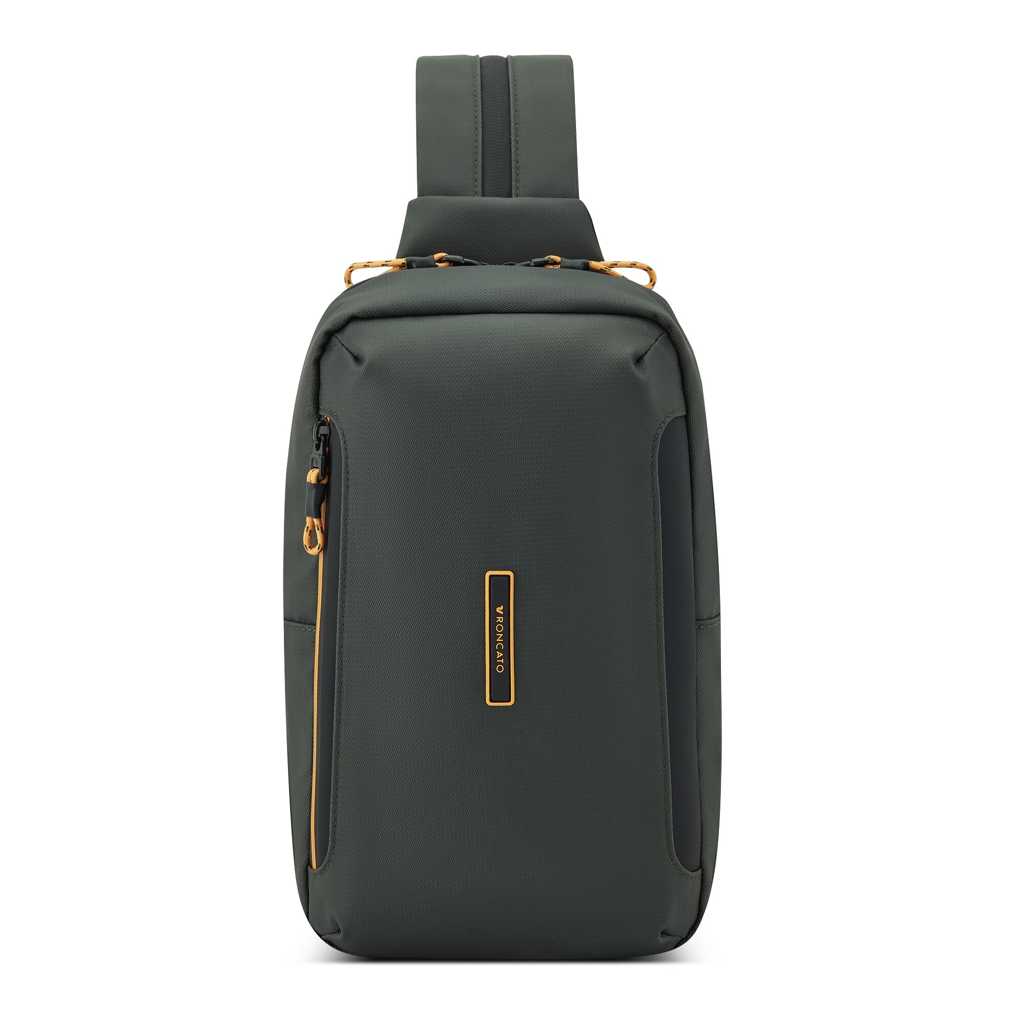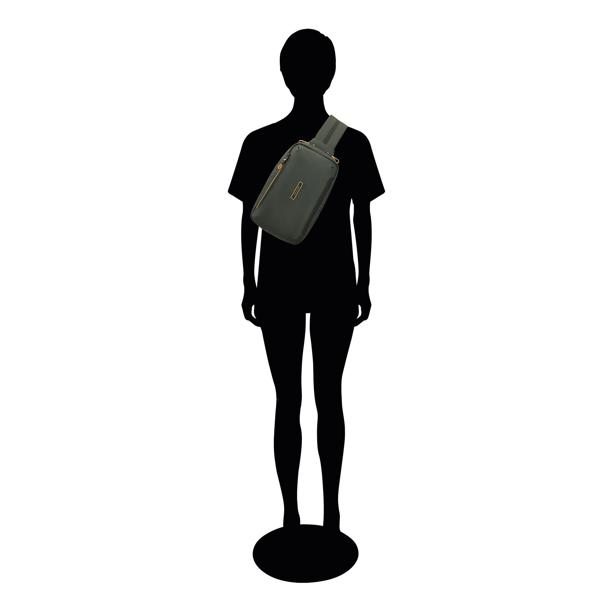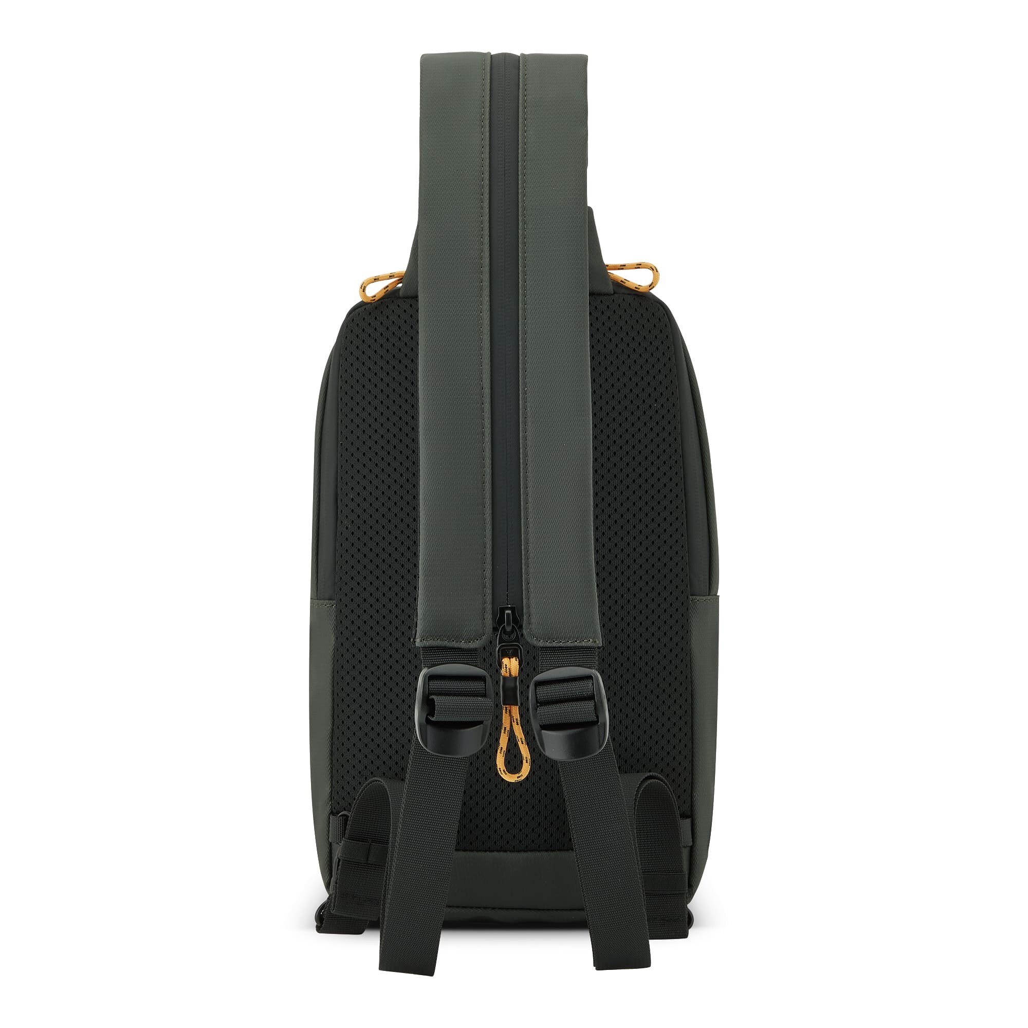 Сумка-слінг ідеально підходить для щоденного використання, дозволить звільнити руки і помістити речі першої необхідності, наприклад ключі, смартфон, портмоне. Оснащена одним основним відділенням в якому є внутрішній відділ для смартфону та відділ для планшету. З зовнішньої сторони кишеня на блискавці для дрібниць. Вироби колекції виготовлені з хвилястого поліестеру 900D з PU-покиттям, яке захищає від дощу, бризок, вологи й швидко сохне. Для зручності переміщення на задній частині розміщені плечові ремені, які за допомогою блискавки у суцільний ремінь, що дозволяє обирати як носити сумку.