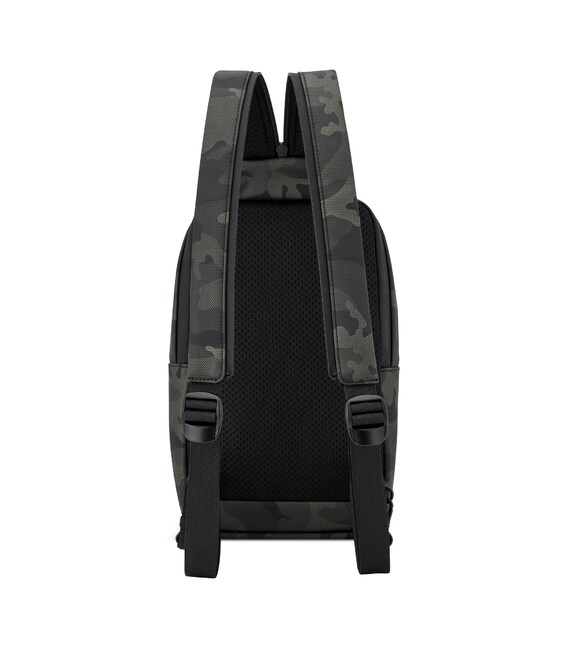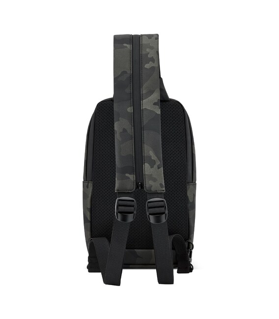 Сумка-слінг ідеально підходить для щоденного використання, дозволить звільнити руки і помістити речі першої необхідності, наприклад ключі, смартфон, портмоне. Оснащена одним основним відділенням в якому є внутрішній відділ для смартфону та відділ для планшету. З зовнішньої сторони кишеня на блискавці для дрібниць. Вироби колекції виготовлені з хвилястого поліестеру 900D з PU-покиттям, яке захищає від дощу, бризок, вологи й швидко сохне. Для зручності переміщення на задній частині розміщені плечові ремені, які за допомогою блискавки у суцільний ремінь, що дозволяє обирати як носити сумку.