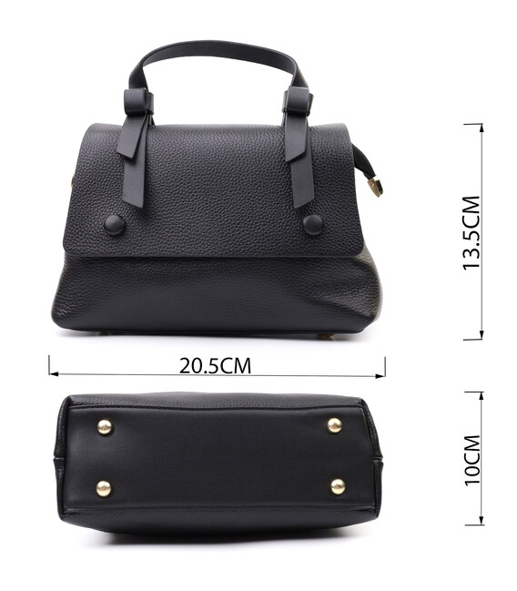 Жіноча ділова сумка з натуральної шкіри флотар, яка невибаглива у догляді та довго носиться. У виробі використано металеві ніжки на дні сумки для захисту дна від потертостей та механічних пошкоджень. Аксесуар складається з основного відділення, кишені відкритого типу та потайної кишені на блискавці всередині. Носити сумку можна в руці, на плечі і через плече, для цього є текстильний ремінь і шкіряна ручка. В аксесуарі використано якісну фурнітуру кольору жовтого золота. Універсальний варіант сумки під діловий стиль та на кожен день.