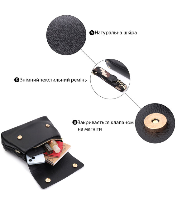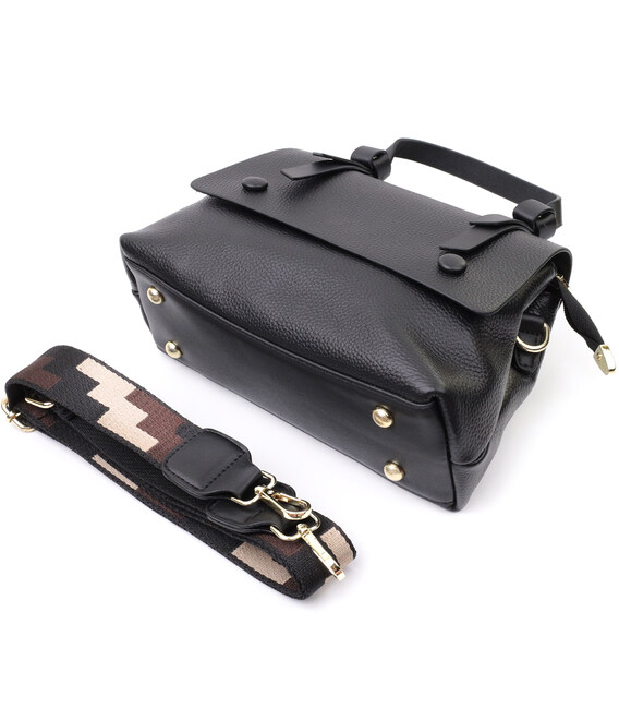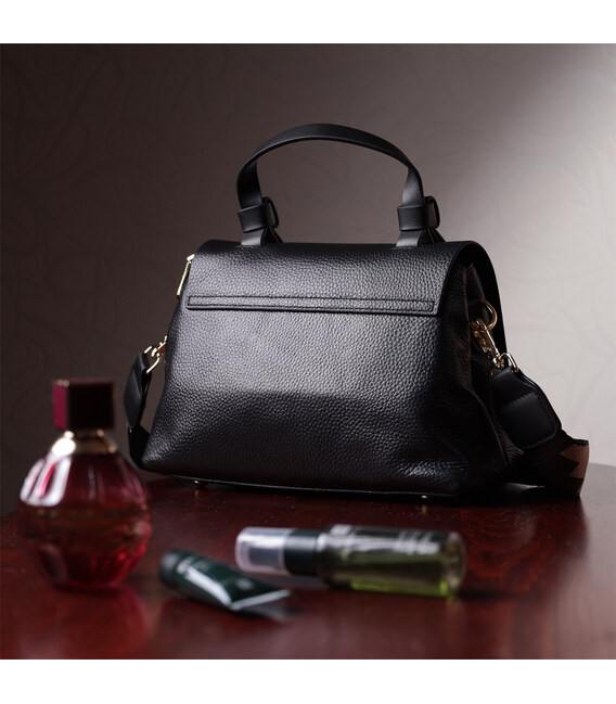 Детальніше Люксова сумка для жінок з короткою ручкою з натуральної шкіри Vintage 22670 Чорна