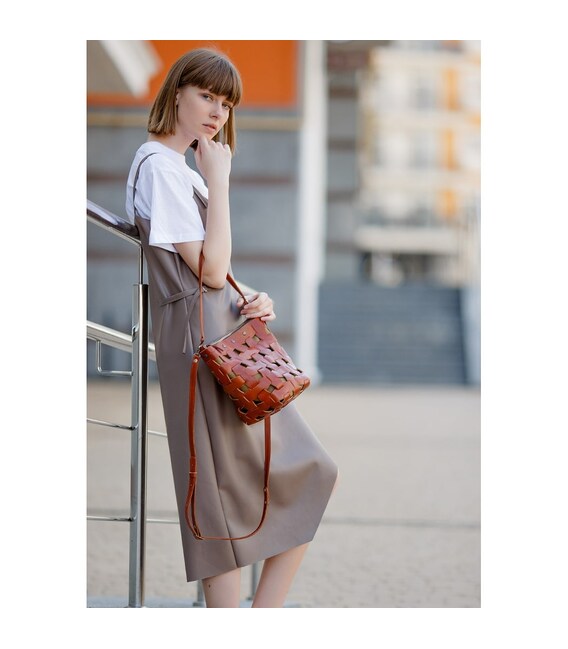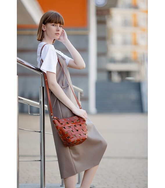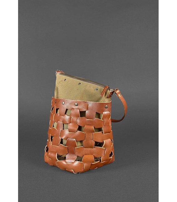 Детальніше Шкіряна плетена жіноча сумка Пазл M світло-коричнева Krast