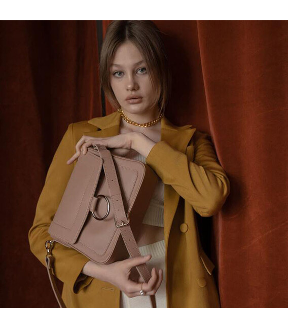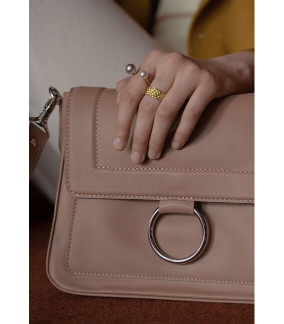 Класична сумка з яскравим акцентними кільцем, що розбавляє стримані форми.