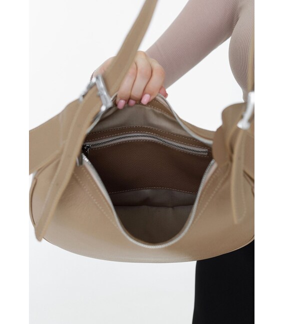 Жіноча шкіряна сумка Vivian темно-бежева флотар