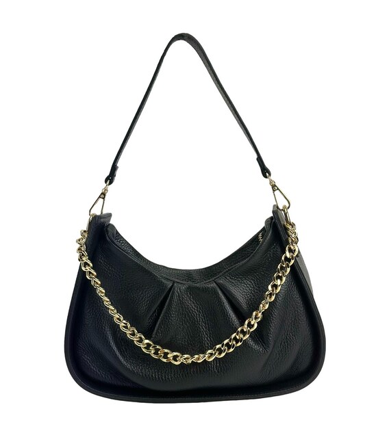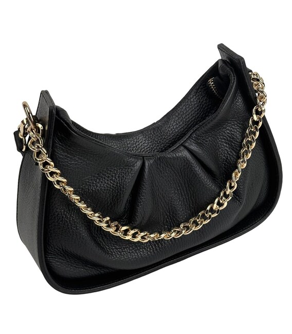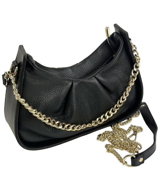 Жіноча м'яка сумка з натуральної шкіри Firenze Italy F-IT-1001A Розмір: 26 x 13(16) x 8 см. Модель компактна невеликих розмірів. Має одне основне відділення яке закривається на блискавку. Усередині є невелика потайна кишенька на змійці, для дрібних предметів. Один короткий ремінець шкіряний, відстібається за допомогою карабінів. Підкладка: текстиль Колір виробу: чорний Колір фурнітури: золото Знайшли цю модель дешевше? Зв'яжіться з нами, і ми запропонуємо Вам найнижчу ціну в Україні, тому що виробник цього товару.